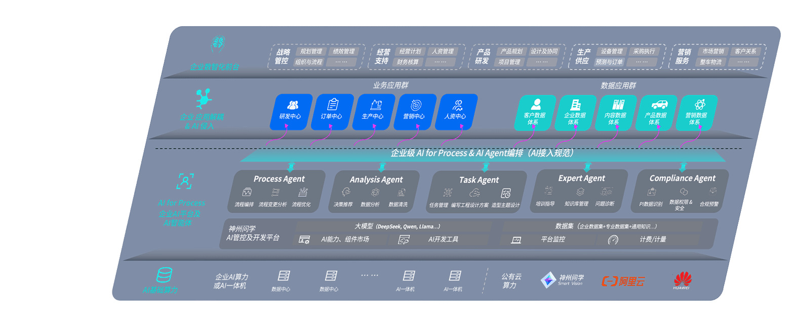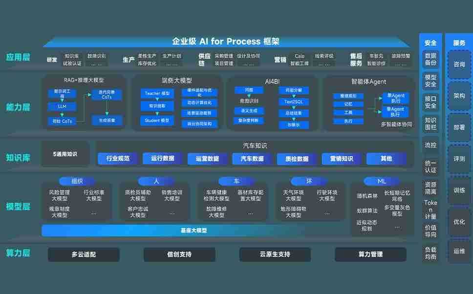 玖鼎问学智车解决方案是一套基于AI技术的汽车行业智能化系统,,,,覆盖从底层算力到顶层AI应用的全栈方案。。。。方案由算力层、、模型层和应用层组成:算力层,,方案支持多种一体机配置,,,具备云端灵活部署、、、多云适配以及动态优化计算资源的能力;模型层,,,玖鼎问学平台版提供了企业级AI应用一站式构建与管理平台,,支持基于后训练强化技术的汽车企业专属模型的训练、、评测和运营;应用层,,,玖鼎问学DeepSeek版提供包括超级员工、、、智能招采、、、、智能营销、、智能客服、、AI for BI等一系列解决方案,,,,可助力汽车行业实现数字化转型,,,,让管理更智能、、响应更敏捷。。。。